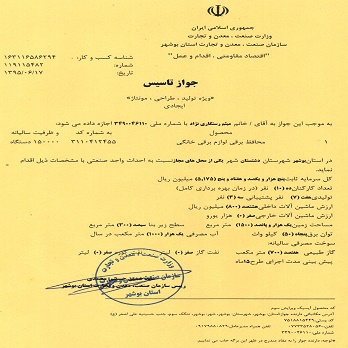"جواز تاسیس از وزارت صنعت، معدن و تجارت"