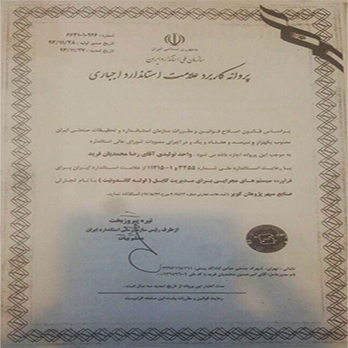 "پروانه کاربرد علامت استاندارد اجباری از سازمان ملی استاندارد ایران"